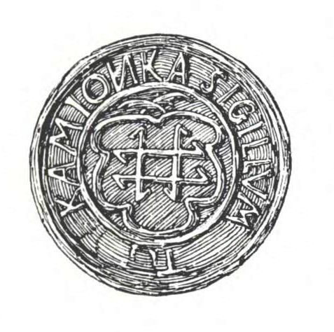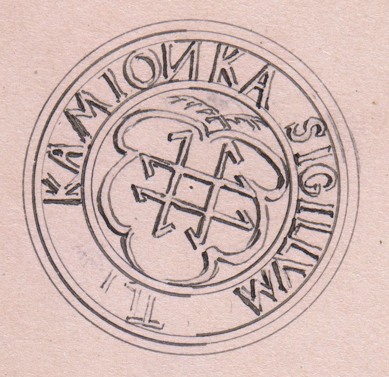 8. Rekonstrukcja pieczęci przechowywana obecnie w Urzędzie Miasta Kamionki, pocz. XXI w.